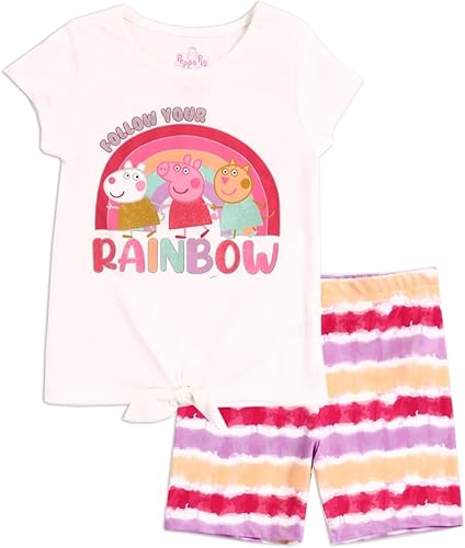 Peppa Pig Toddler Girls' Follow Your Rainbow Bike Short Set, White (3T)