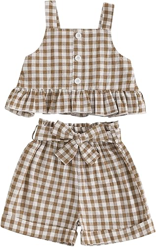 Cute Toddler Girls Two Piece Short Sets Ruffle Sleeveless Top and Elastic Waistband Short Sets