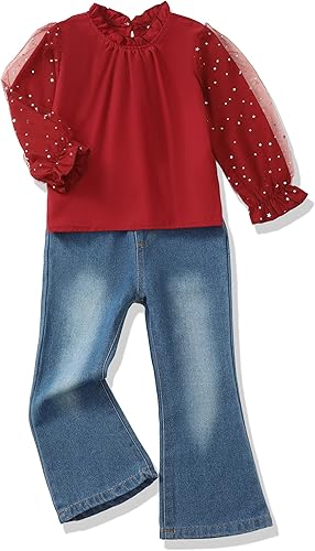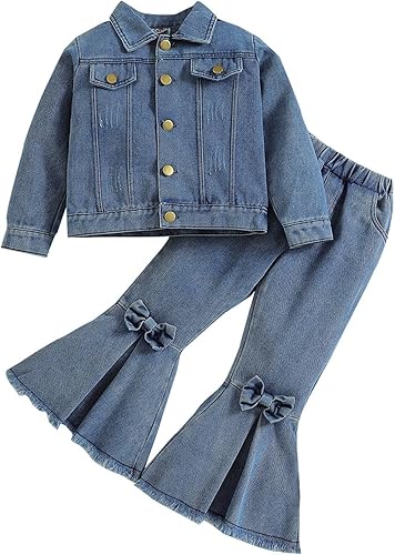 Kids Clothes Little Girls 2 Piece Outfits Fashion Pullover Shirt Bell Bottoms Jeans Toddler Girl Clothing Set