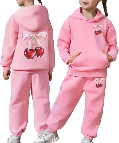 Pink Bow 2 Piece Sets Sweatsuit for Girl Cute Kids Fall Clothes Graphic Hoodies Pullover and Sweatpants Outfits