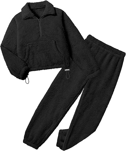 Girls Clothes Winter Fleece Quarter-zip Solid Color Sweatshirt With Sweatpants Girls Clothing Set Two Piece Outfits
