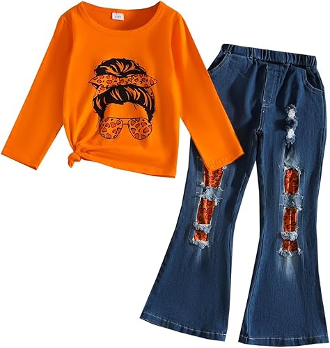 Toddler Girl Clothes Figure Graphic Drop Shoulder Top Pullover Leopard Print Flared Pants Fall Winter Outfit Set