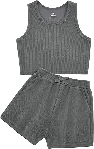 Stelle Girls 2 Piece Outfits Cute Sleeveless Summer Short Sets Athletic Scoop Neck Tank Top and Shorts with Pockets