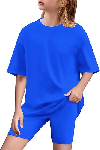 Girls Summer Outfits 2 Piece Lounge Set Short Sleeve T Shirt and Biker Shorts Tracksuit Kids Clothing Set Size 5-15Y