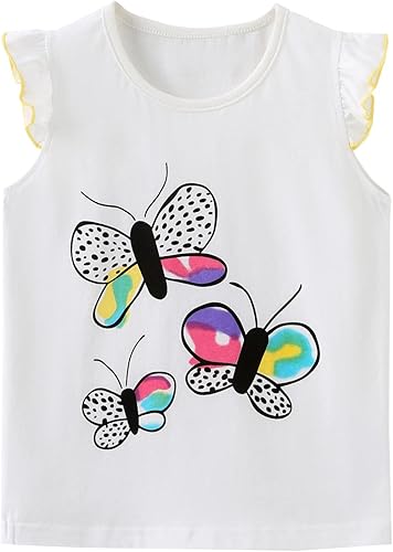 HILEELANG Girl Short Sets Summer Short Sleeve White Buffterfly Floral Shorts Cotton Casual Playwear Outfits Clothing Sets Size 7