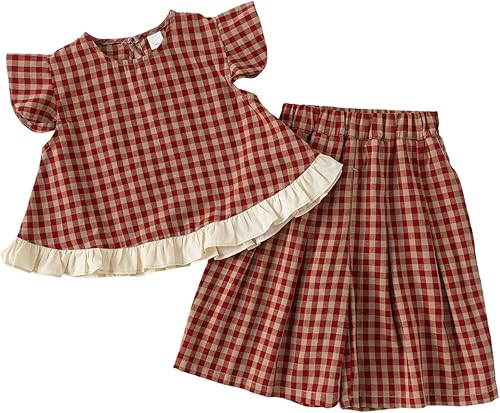 Girls' Summer Casual Outfit Ruffle Sleeve Top and Elastic Waist Shorts Clothing Set Lightweight Two Piece