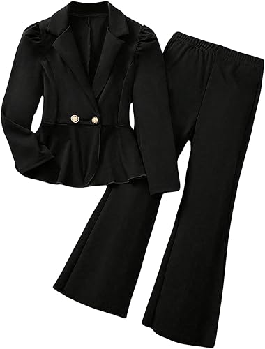 Milumia Girl's 2 Piece Outfits Ruffle Long Sleeve Button Blazer and Pants