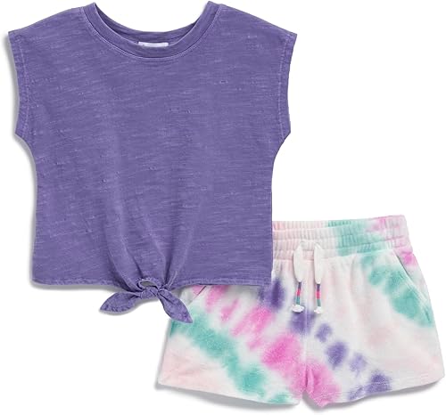 Splendid girls Daydream Short Sleeve Tie Knot Tee Shirt and Tie Dye Shorts 2-piece Set