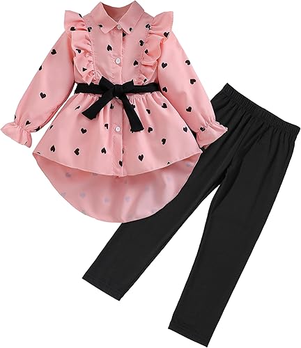 Happy Cherry Toddler Girl 2 Piece Pants Set Long Sleeve Ruffle Hem Top and Pants Leggings Set