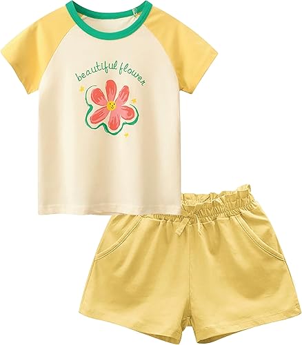KADY Toddler Girl Cotton Summer Short Sleeve T-Shirt and Shorts Set
