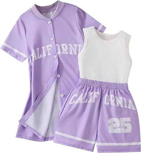 Hilinker Girls 3 Piece Outfits Graphic Tank and Short Sleeve Cardigan with Shorts Set