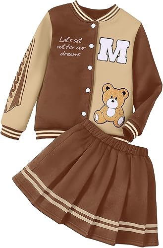 PureChapter Girls Skirt Sets Baseball Jacket Sweatshirt Pleated Skirt 2 Piece Preppy Clothes for Girls