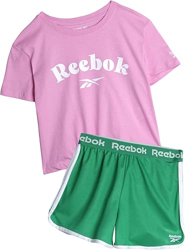 Reebok Girls Shorts Set - 2 Piece Short Sleeve Jersey Shirt & Girls Athletic Shorts - Activewear Kids Clothes Short Sets