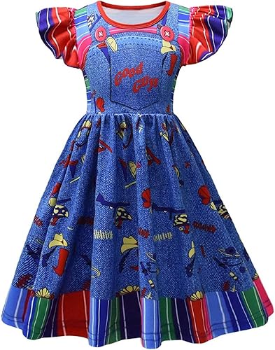 Tempura Little Girl Doll 2 Pieces Outfit Rainbow Doll Collar Puff Sleeve Tops Suspender Skirt with Front Pocket