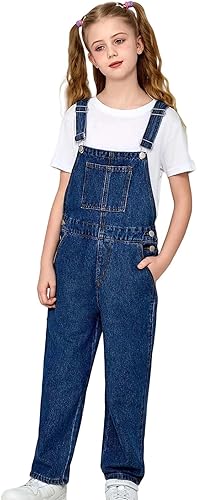 Kids Relaxed Fit Denim Bib Overalls Little Big Boys Girls Soft Cotton Jean Pants 3-8Years