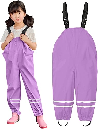 Kids Reflective Suspender Rain Pants Toddler Waterproof Little/Big Boys Girls Pants Rain Overalls, Mud Rain Pants
