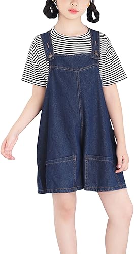 Little&Big Girls Denim Dungaree Dress Jean Overall Dress,Kids Girls Adjustable Denim Stretch Dungaree Skirt