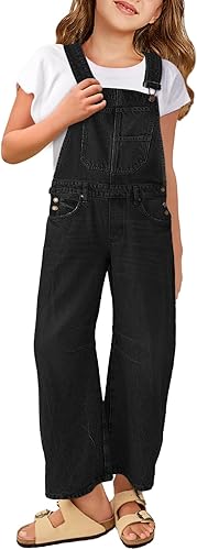 Girls Bib Overalls Kids Jumpsuits & Rompers Long Pants with Adjustable Straps Solid Outfit 3-12 Y