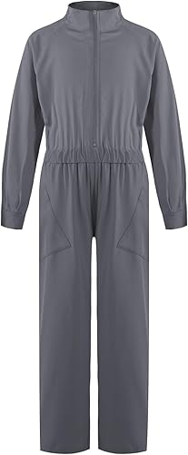 Freebily Girls Casual Jumpsuit for Kids Boys Long Sleeve Stand Collar Elastic Waist Rompers with Pockets Cargo Coveralls