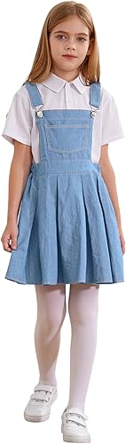 TiaoBug Kids Girls Denim Overall Dress with Pleated Skirts Casual Adjustable Suspenders Jumper Dress with Pocket