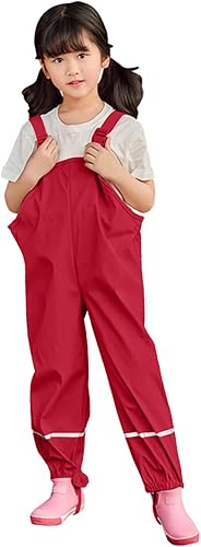 Kids Boys Girls Water-Proof Suspender Rain Pants Outdoor Rain Bib Mud Proof Overall Outdoor Hiking Bib