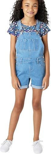 VIGOSS Girls' 2-Piece Shortall Set (S-7/8, Pebble, Denim, Small)