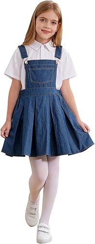Little Girls Ajustable Strap Denim Pleated Skirt Girls Denim Overalls Jeans Dress for Kids