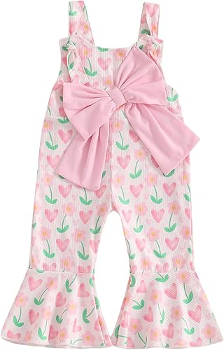 Toddler Girls Cute Outfits My Frist Valentine's Day Overalls Jumpsuit Heart Printed Sleeveless Flare Pants Romper