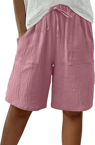 Bermuda Shorts for Girls Trendy Casual Summer High Waisted Long Shorts Straight Leg Hiking Vacation Chino Short Pants
