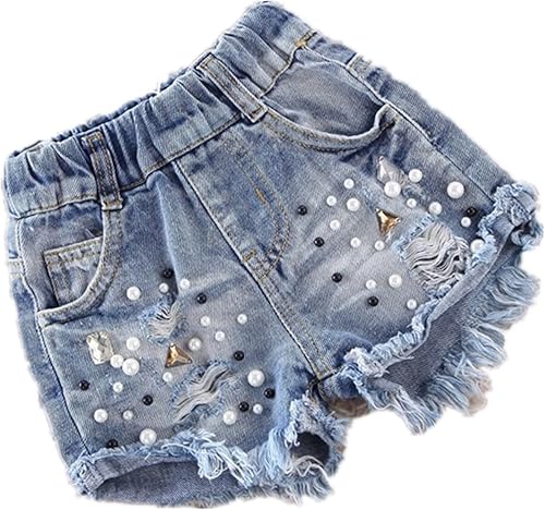 1-12 Years Girls' Denim Shorts Retro Nostalgic Hole Pearl Children's Jeans Shorts