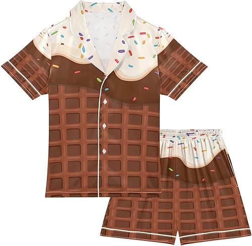 ICOSY Girls Pajamas 2 PCS Kids Pajamas Set Short Sleeve Top and Shorts for Toddler Girls Clothes Size 8-15