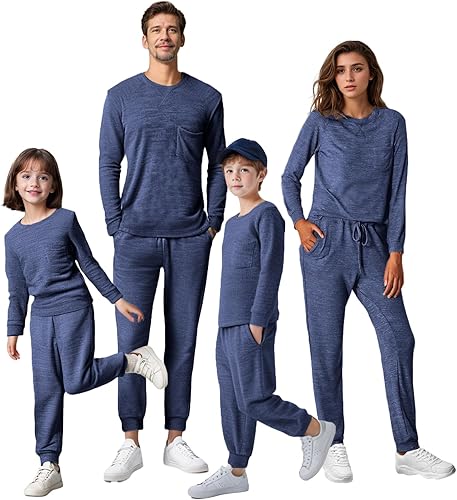 IFFEI Family Matching Pajamas Sets 2 Piece Lounge Set Long Sleeve Soft Loungewear Sleepwear Joggers with Pockets