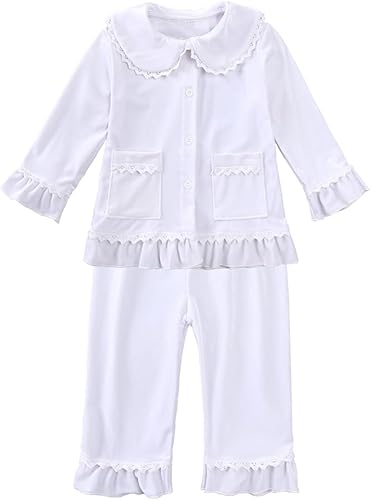 Kuriozud Toddler Girl Christmas Silk Pajamas Ruffle Button Down 2 Piece Pajama Set Kids Little Girls Pjs Nightgown Outfit