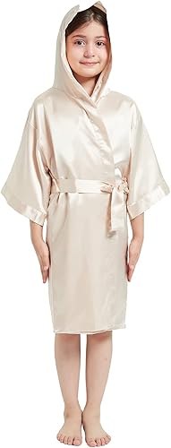 Umeyda Girls Satin Kimono Hooded Bathrobe, 4-12 Years