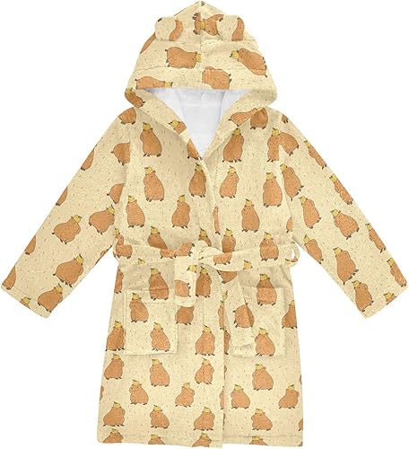 SHJI Cute Capybara Fruit Girls Bathroom Clothes Boy's Plush Bathroom Gown Unisex Hooded Sleepcoat XS