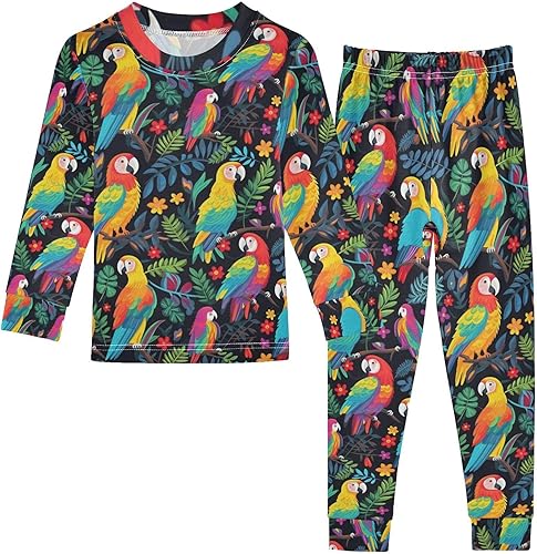 ALAZA Parrot on Trees Pajamas Set Snug-fit Long Sleeve Sleepwear,18 M