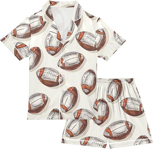 Satin Pajama Sets Short Sleeve Orange Background Potato Chips Button Down Silky Nightwear 2 Piece PJS 5-14Y