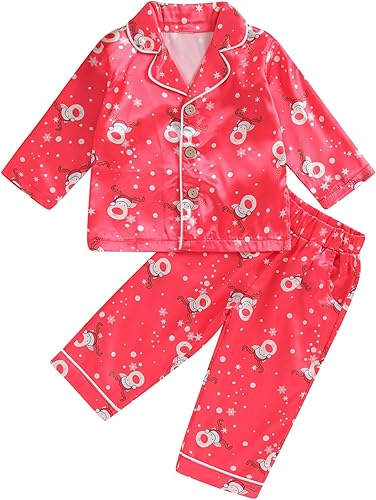 fyclemt Toddler Baby Boys Girls Silk Pajamas Set Christmas Tree Santa Button Down Shirts Pants Pjs Satin nightgown Sleepwear