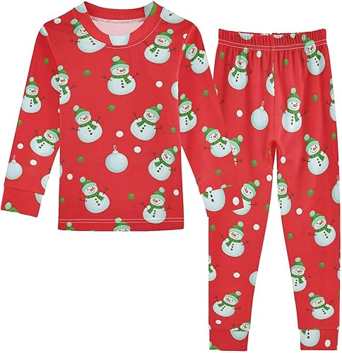 Pajama Sets Long Sleeve Snowman Pattern on Red Soft Comfy Sleepwear 2 Piece PJS 3-8T