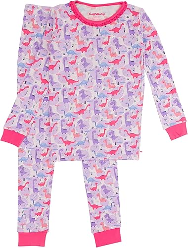 RuffleButts SoftSnooze Viscose from Bamboo Girls Ruffle Long Sleeve Pajama Set - Sweetie-saurus Kids, 9/10