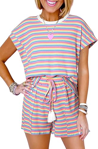Summer Style: Pink Stripe Tee and Drawstring Shorts for Easy Movement