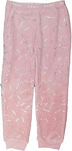 DKNY Big Girls Two-Piece Pajama Set with Plush Fleece Pajama Pant (12, Heather Grey/Pink)
