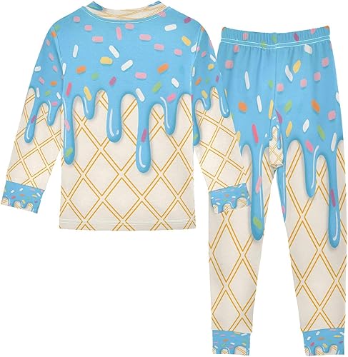 ALAZA Blue Stylish Ice Cream Pajamas Long Sleeve Sleepwear 2-Piece Pajama Set 4Y