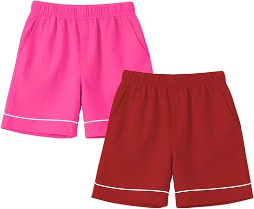 SANGTREE Girls 2-Pack Pajama Shorts Pj Bottoms with Pockets Soft Lounge Shorts, Rose/Red, 5-6 Years = Tag 130