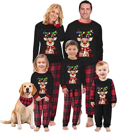 Awoscut Christmas Family Matching Pajamas Christmas Pjs Holiday Nightwear Sleepwear Sets Long Sleeve Pjs
