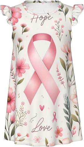 Augenstern Flutter Sleeve Nightgown Pajama Gown Breast-Cancer-Ribbon-Hope Easy Pull-On Sleepwear Nightdress