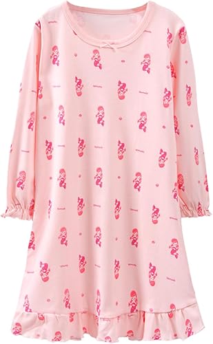 Girls Nightgown,Modal Cotton Sleepwear Solid Color Nightie Casual Princess Dresses for Kids 3-12 Years