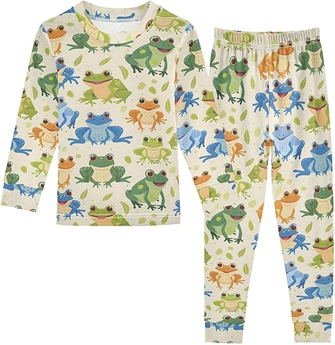 ALAZA Cartoon Animal Frog Leaf 2 Piece Pajama Set Long Sleeve Top and Pants Sleepwear Unisex