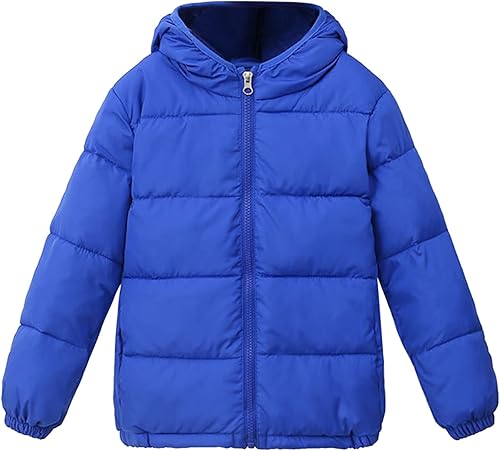 Down Jacket for Youth Boy Girls Kids Winter Warm Jacket Outerwear Solid Coats Hooded Down Outwear (Hot Pink, 6-7 Years)