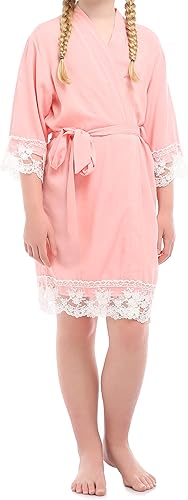 Umeyda Kids Girl's Robe Lace Trim 3/4 Sleeve Kimono Bathrobe Sleepwear, 3-10 Years